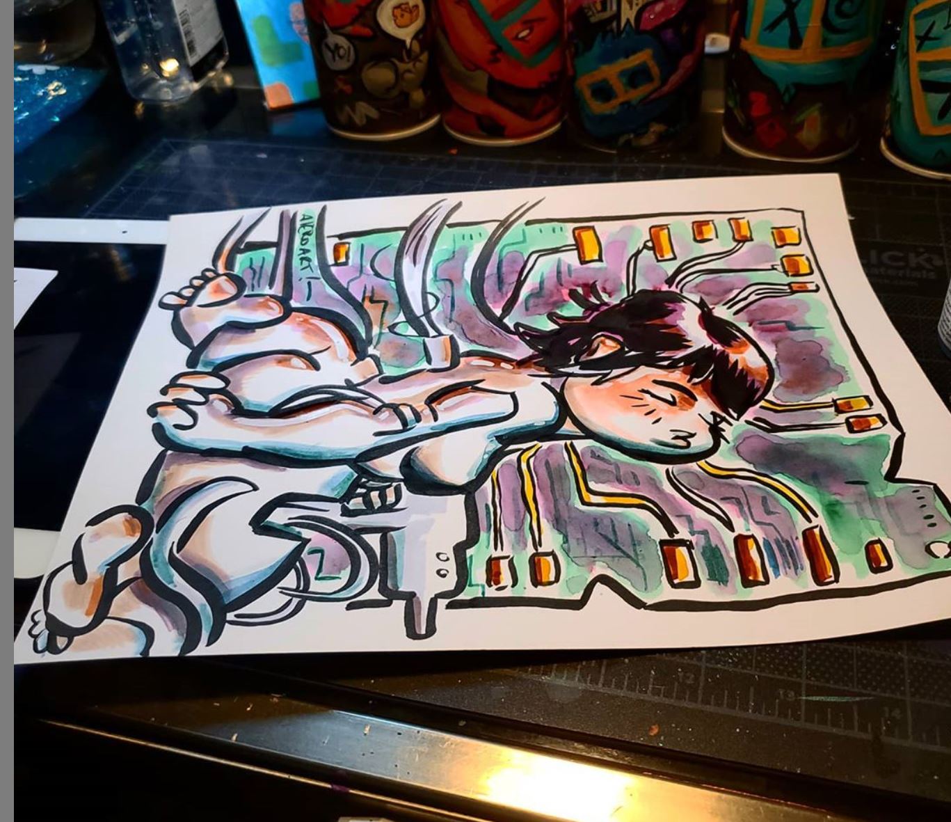 Im always open for custom fan art ala ALEROART 9 x 12 piece. Drawn on Bristol smooth board and inked with a pental pen and pro white paint and of course watercolor. Lets make some fun cool art. Great for