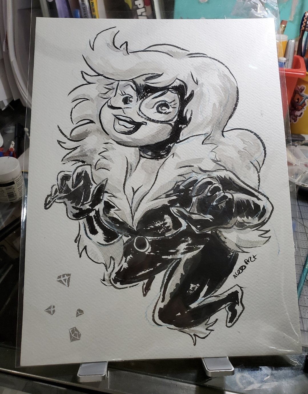 Aleroart custom art 🎨 with black Cat, Brush ink, watercolor 9x12 commission style.